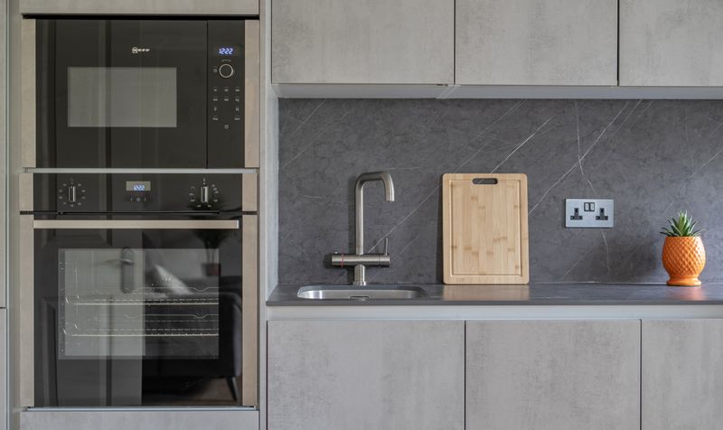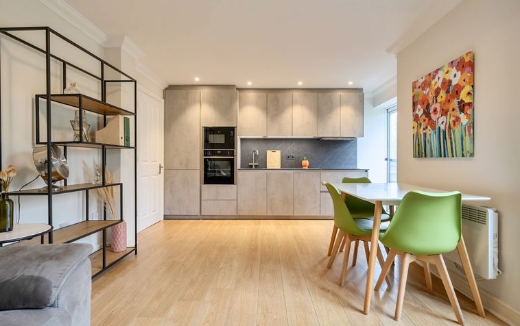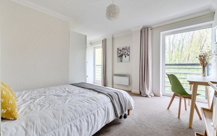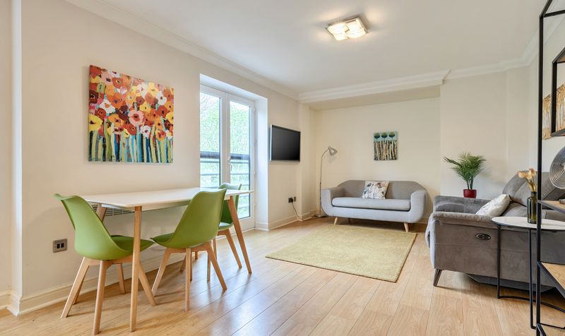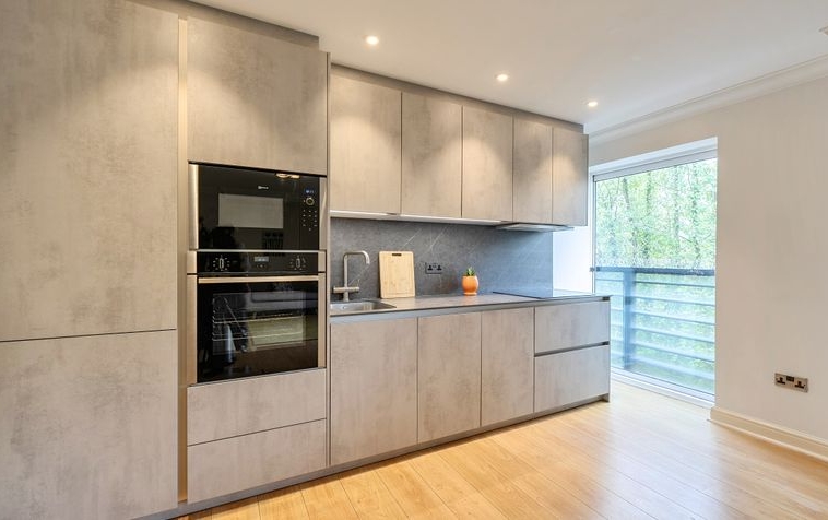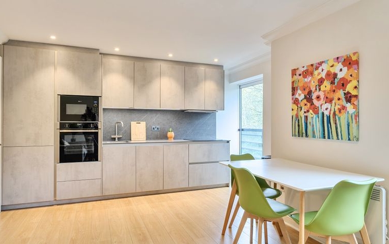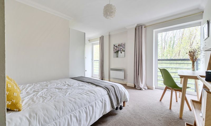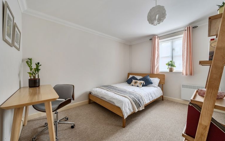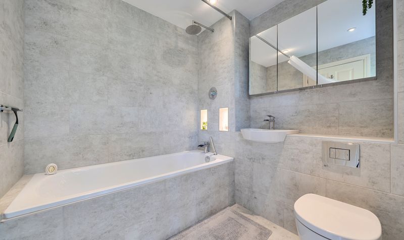 The bespoke handle-less German kitchen is a real feature, with sophisticated cabinetry hiding integrated appliances and a boiling water tap. Both bedrooms are well-sized, but the principal bedroom is particularly impressive, with floor-to-ceiling windows and a luxury en-suite bathroom. The apartment further benefits from an additional hotel-style shower room and generous hallway cupboards. Additional storage is provided in the building’s secure attached cycle store, where the property has its own large external lock up. Offered to the market with no forward chain, this property presents an excellent opportunity for a smooth and swift transaction.