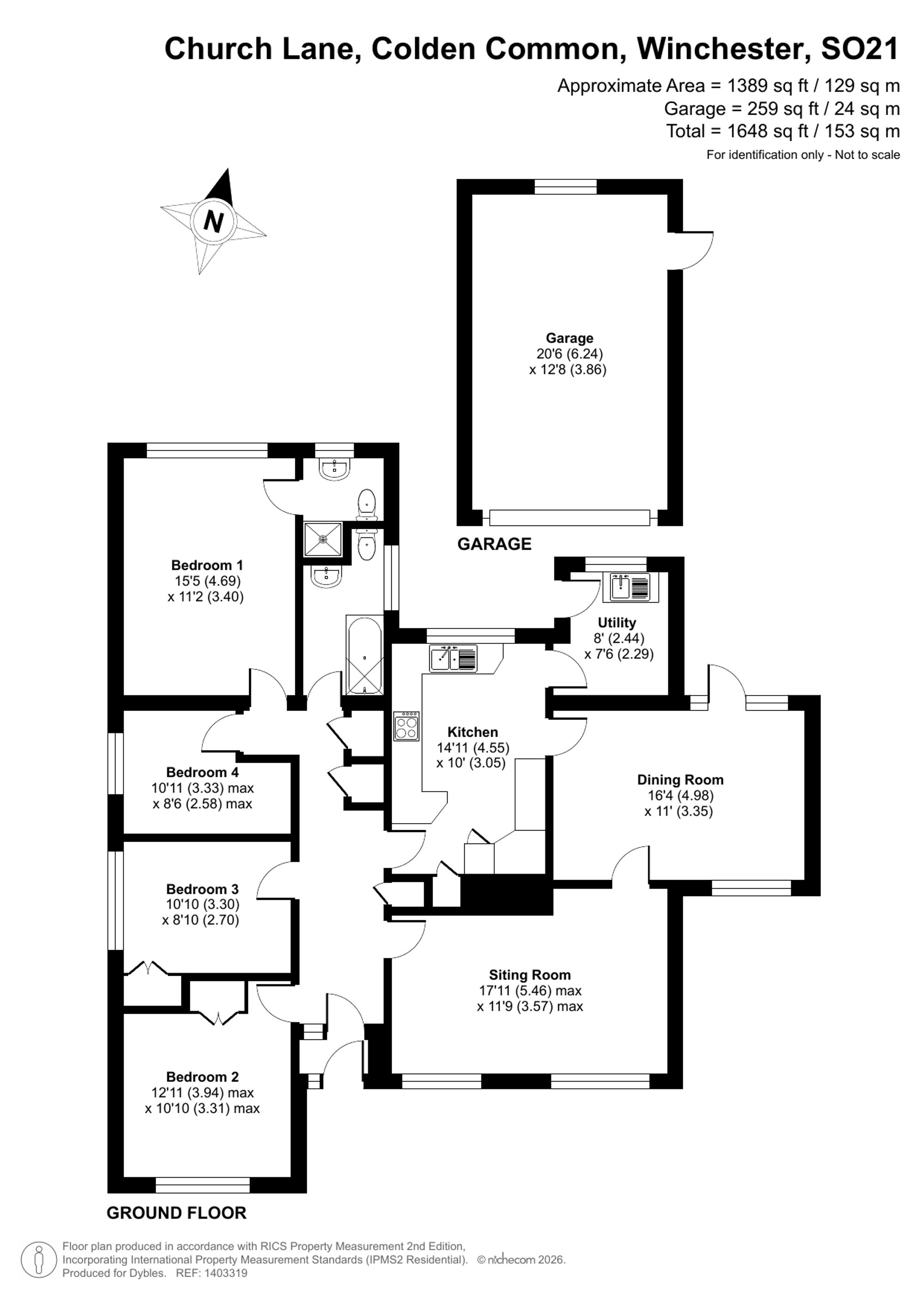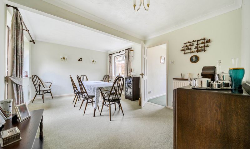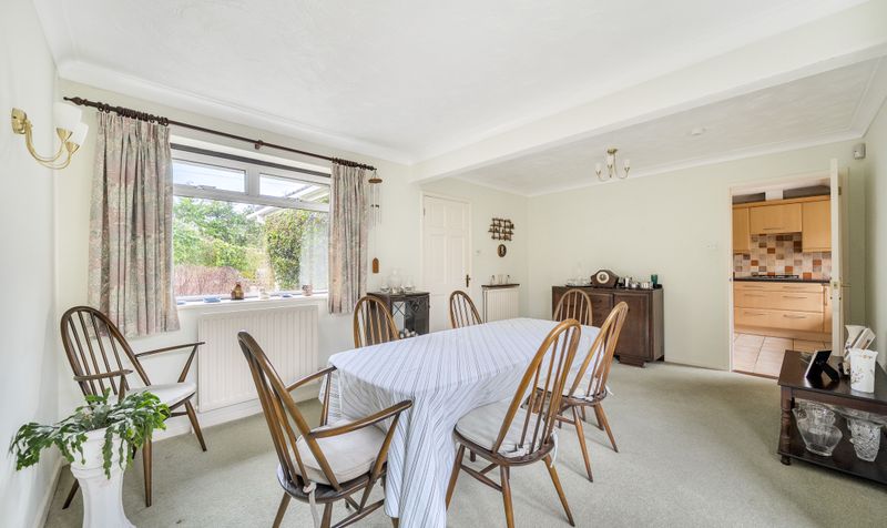 The accommodation is arranged on a single level and provides excellent flexibility for a range of buyers. The property features a generous sitting room with views out to the front of the garden, a separate dining room with access onto the back garden, ideal for family meals or entertaining, and a well-sized kitchen with adjoining utility room offering practical everyday space. There are four bedrooms, including a larger principal bedroom with ensuite, all bedrooms served by a family bathroom.