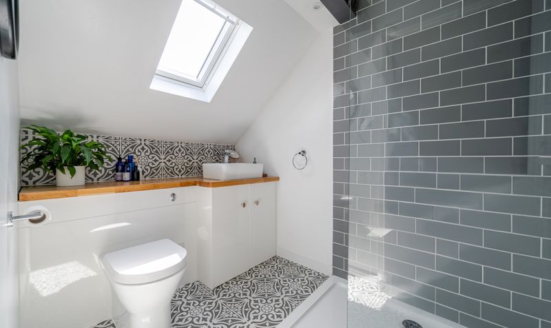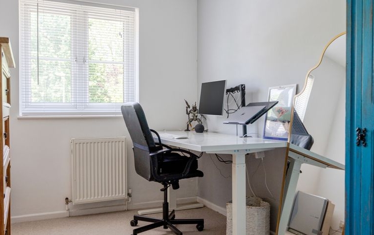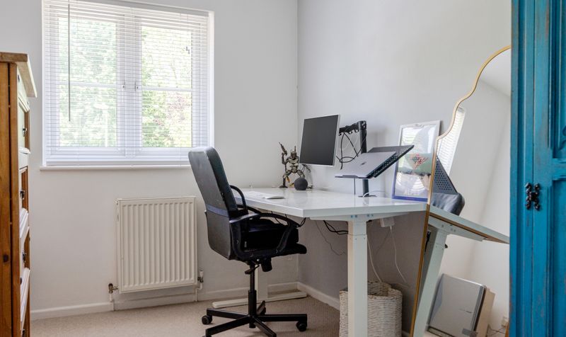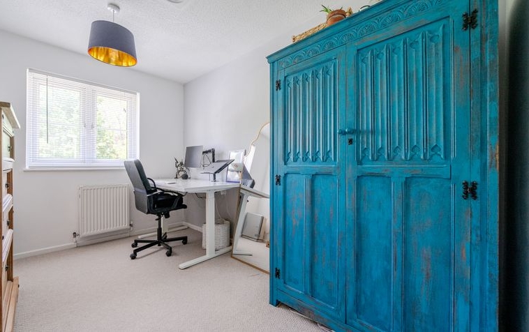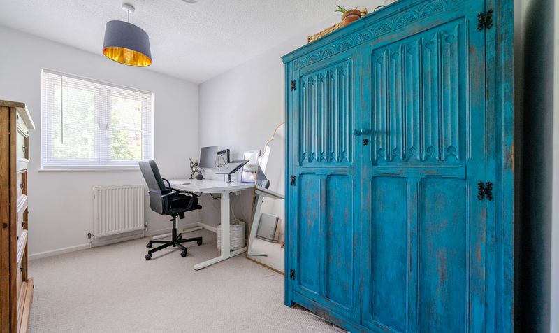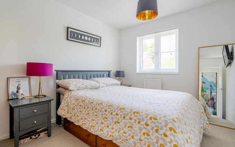Upstairs, you’ll find a generously sized master bedroom, a well-proportioned second double bedroom, and a sleek, modern family bathroom. A deep hallway cupboard offers excellent storage solutions, adding to the home’s practicality.