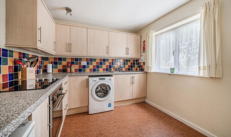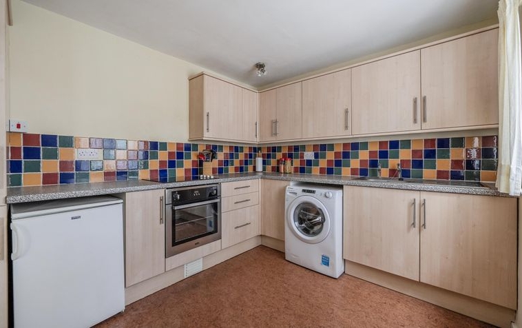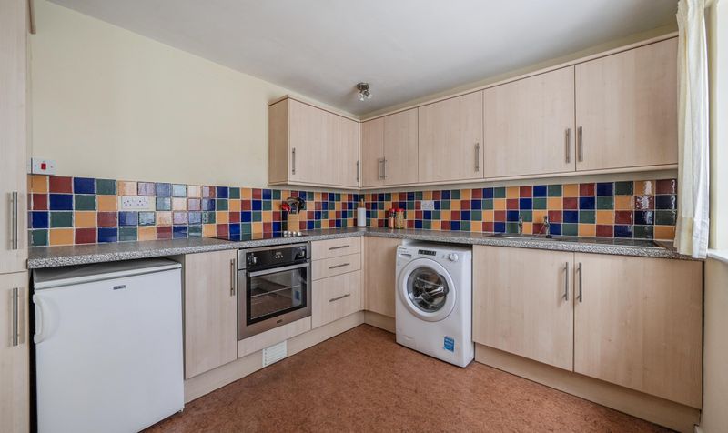 Dimensions: 9′ 1” x 9′ 7” (2.77m x 2.92m). The kitchen is currently fitted with plenty of eye and base level storage units and there is space for all the main kitchen appliances. There is enough space to fit a small breakfast table looking out onto the front aspect. The window to the front is double glazed.