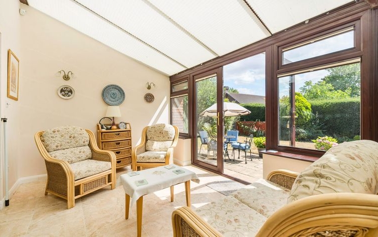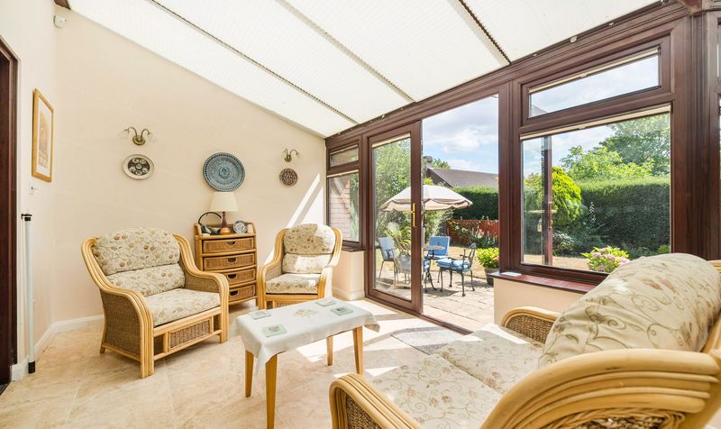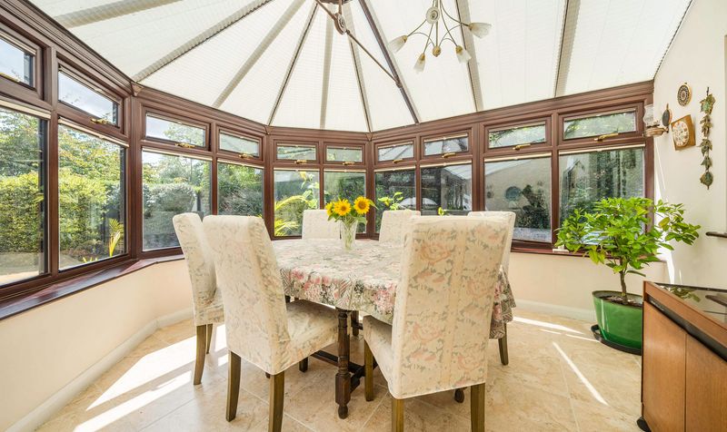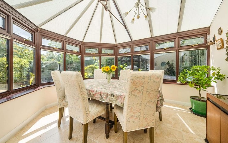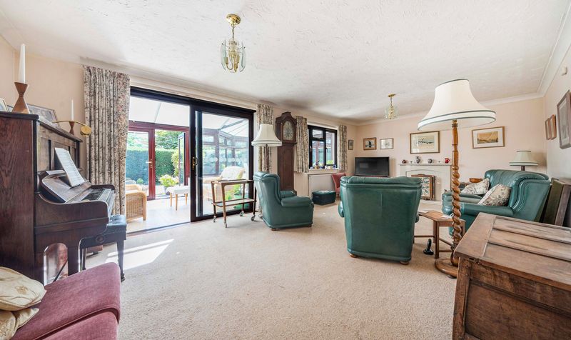 The heart of the home lies in the expansive lounge, a fantastic space for relaxation and entertaining, which seamlessly flows into a light-filled conservatory—perfect for year-round enjoyment.