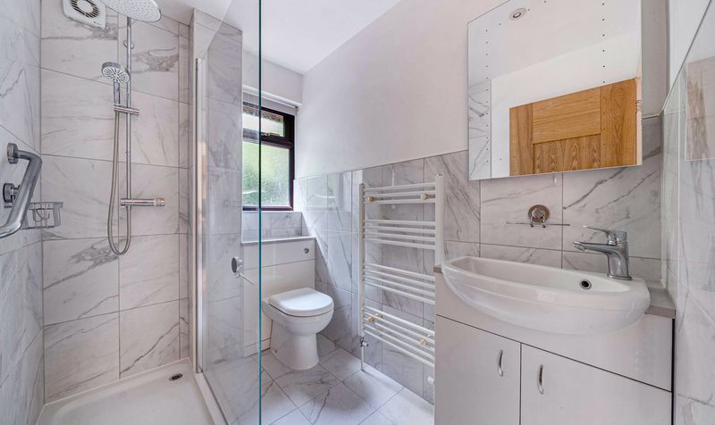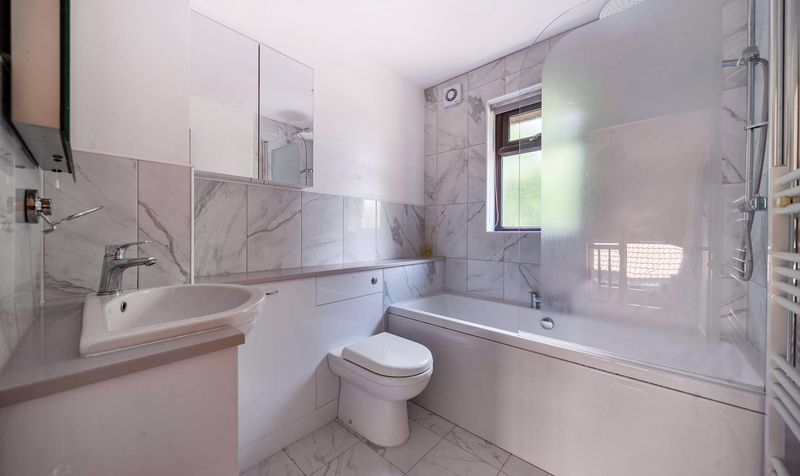 Upstairs, the property continues to impress with four generously proportioned bedrooms, each benefitting from built-in storage. The main bedroom further enjoys a modern en suite bathroom, while a stylish family bathroom services the remaining rooms.