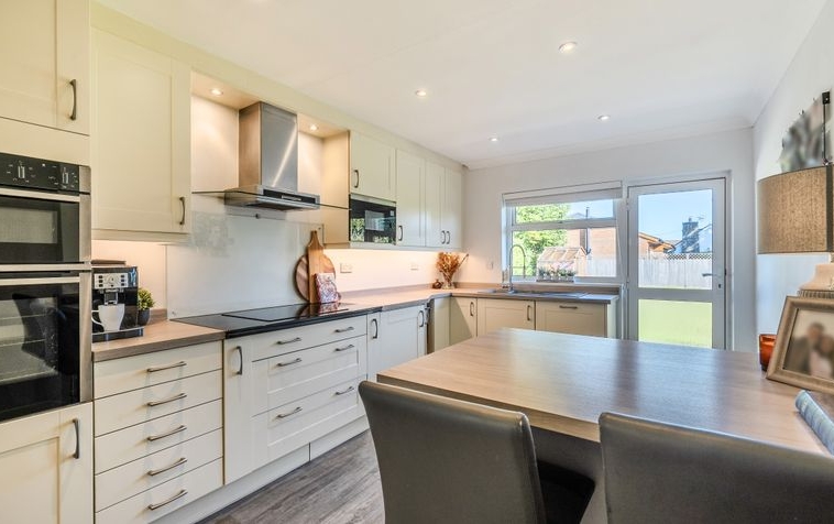 Externally, the property enjoys a driveway with parking for multiple vehicles and a flat, well-maintained garden, offering excellent accessibility for those looking to downsize without compromising on outdoor space. Additional outbuildings, including a shed and greenhouse, provide useful storage and hobby opportunities.