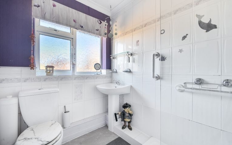 The kitchen is well sized and functional, while the overall layout of the ground floor provides a natural flow between living areas. Upstairs, there are three bedrooms, all of good proportions, served by a family bathroom.