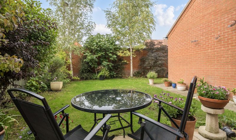 Externally, the property features a south-west facing garden, ideal for enjoying afternoon and evening sunshine. In addition, the home benefits from allocated parking and a detached garage, providing both secure parking and excellent storage space.