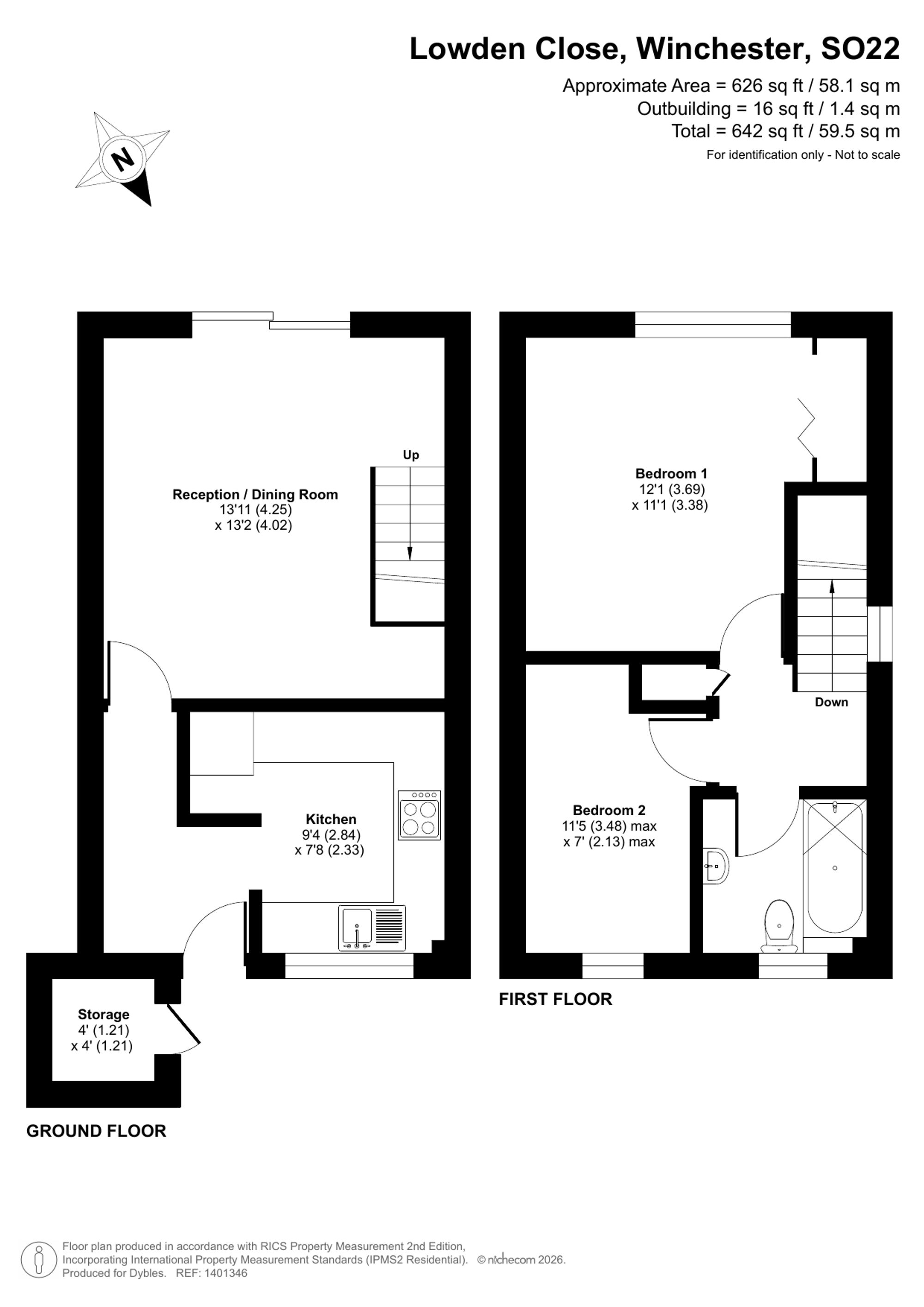 Upstairs, the first floor offers two bedrooms, including a well-proportioned principal bedroom and a second bedroom ideal for guests, home working or additional storage. A family bathroom completes the first floor layout.