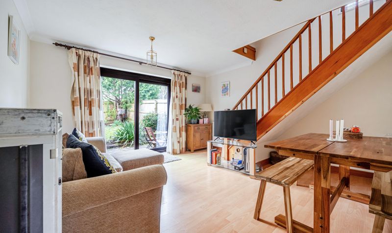 The ground floor accommodation comprises a welcoming reception/dining room with ample space for both relaxing and entertaining, alongside a fitted kitchen with direct access to a useful external storage area. From the kitchen, the property leads out to a private South-West rear garden, providing a pleasant outdoor space for dining, gardening or simply enjoying the quieter end-of-terrace position.