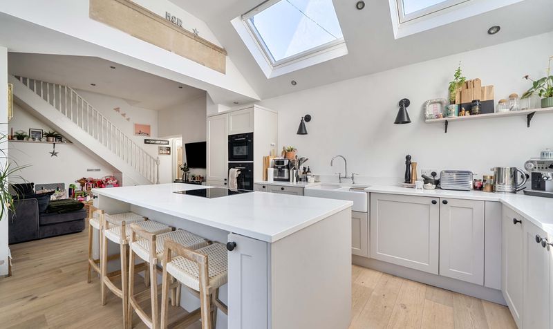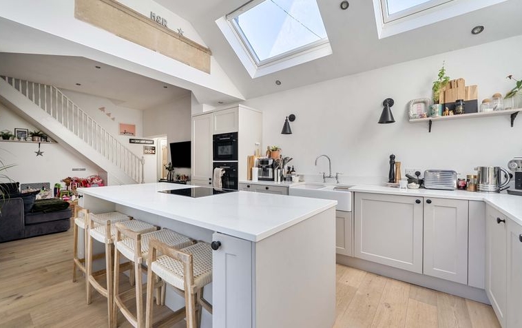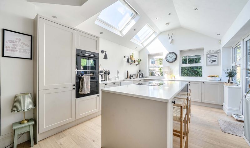 Stunningly decorated throughout, the property perfectly blends character features with modern living. The ground floor boasts a welcoming reception room linked to a thoughtfully designed kitchen which is extended to provide an open and airy space, ideal for both everyday living and entertaining. To the rear, a separate sitting room enhanced by attractive bay windows that flood the space with natural light while preserving the home’s original charm.