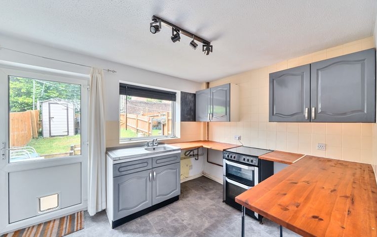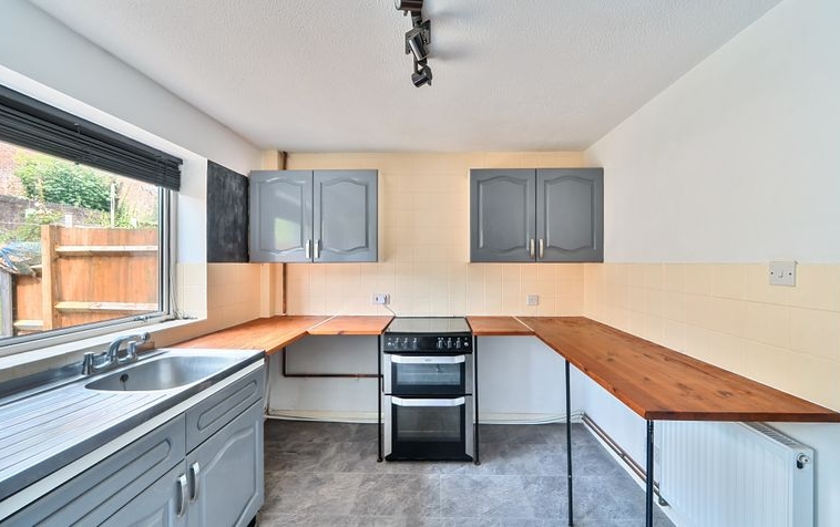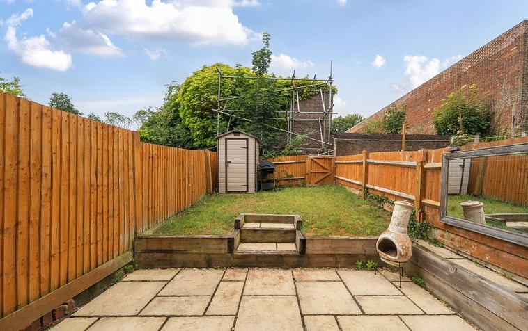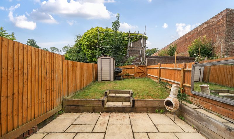 The home features a reasonably spacious living area that leads into a kitchen at the rear—perfect for those looking to add their own personal touch. Upstairs, there are two generously sized bedrooms and a well-appointed family bathroom. Outside, a private rear garden offers a peaceful space for relaxing or entertaining.