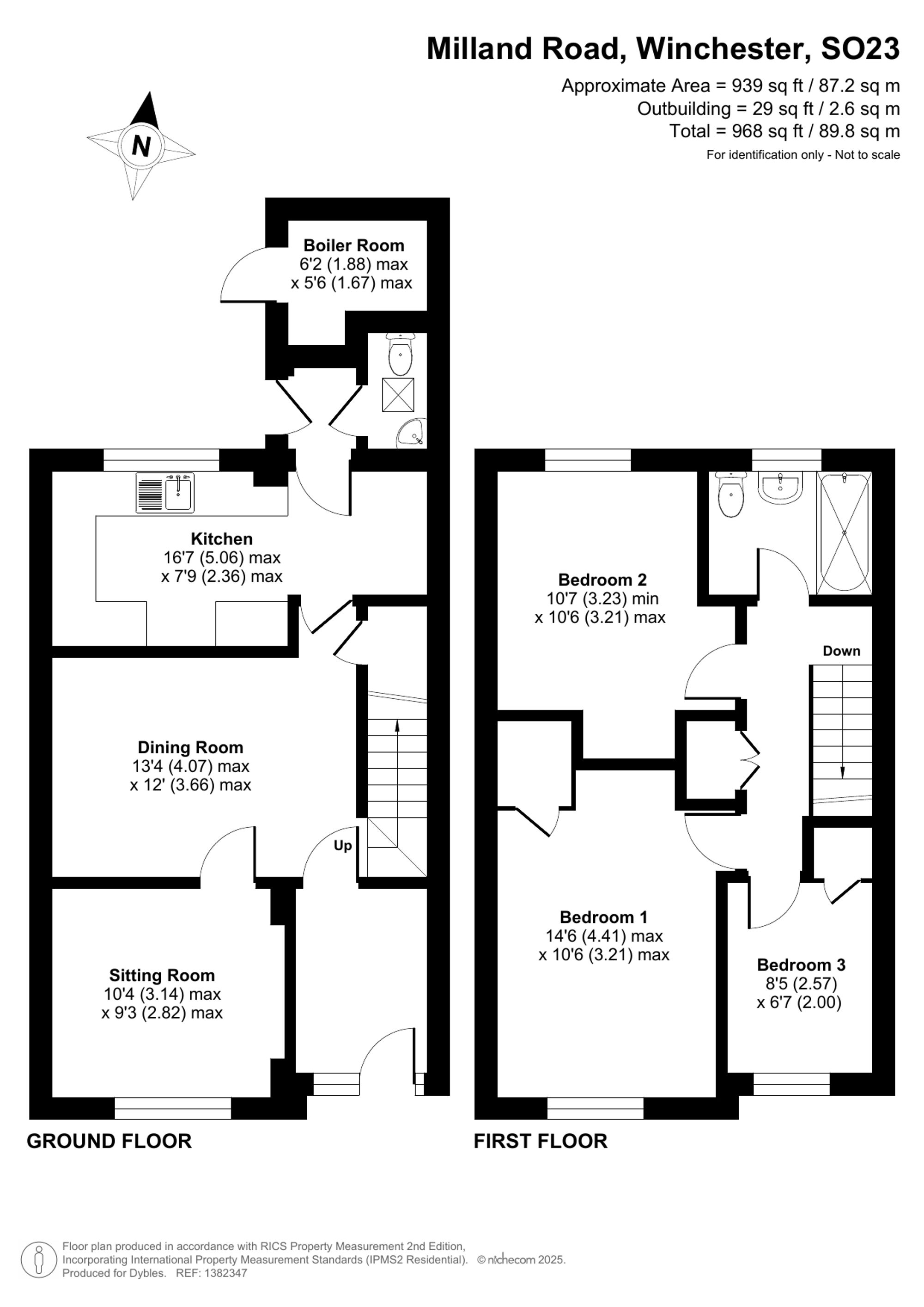 Externally, the home features a private rear garden with direct access to communal parking, providing practical convenience alongside the availability of on-road permit parking for residents. An outbuilding offers additional storage or workshop potential, contributing to the total internal and external area of approximately 968 sq ft (89.8 sq m).