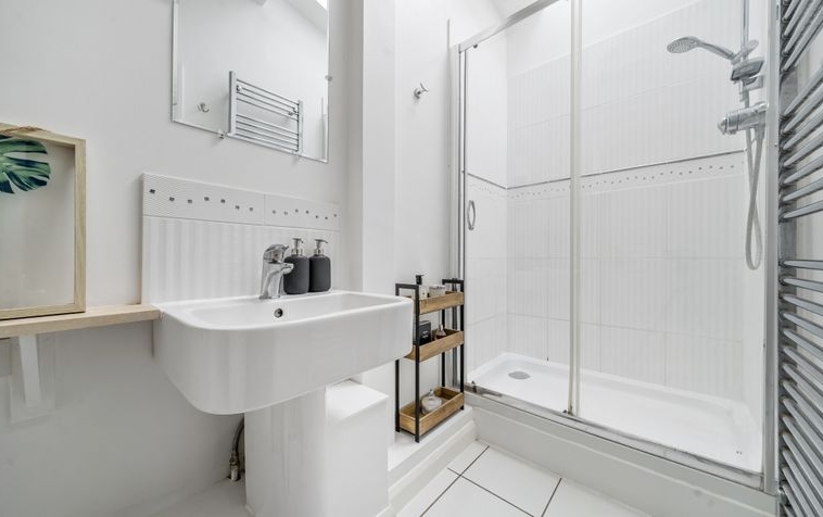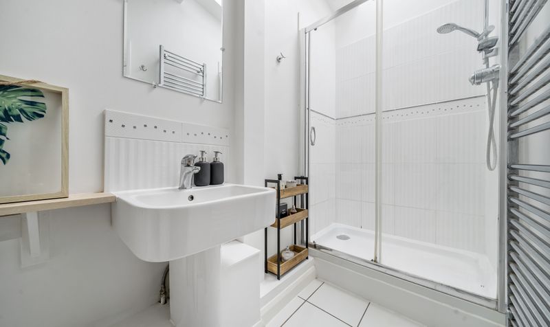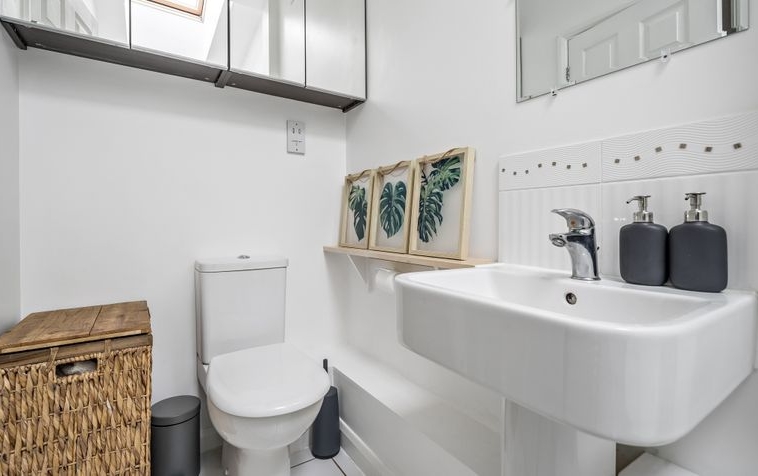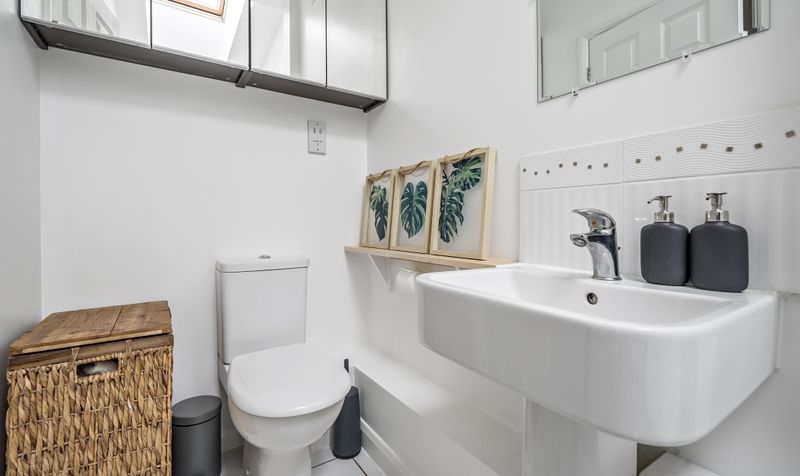 On the first floor and to the front of the home is the principal bedroom complete with an abundance of built in wardrobe space. A large window with white shutters completes the tastefully decorated room. The second bedroom, currently being used as an office, is located to the rear of the home and has a large sky light. The final room that completes this floor is the bathroom which houses a basin, toilet, and large shower.
