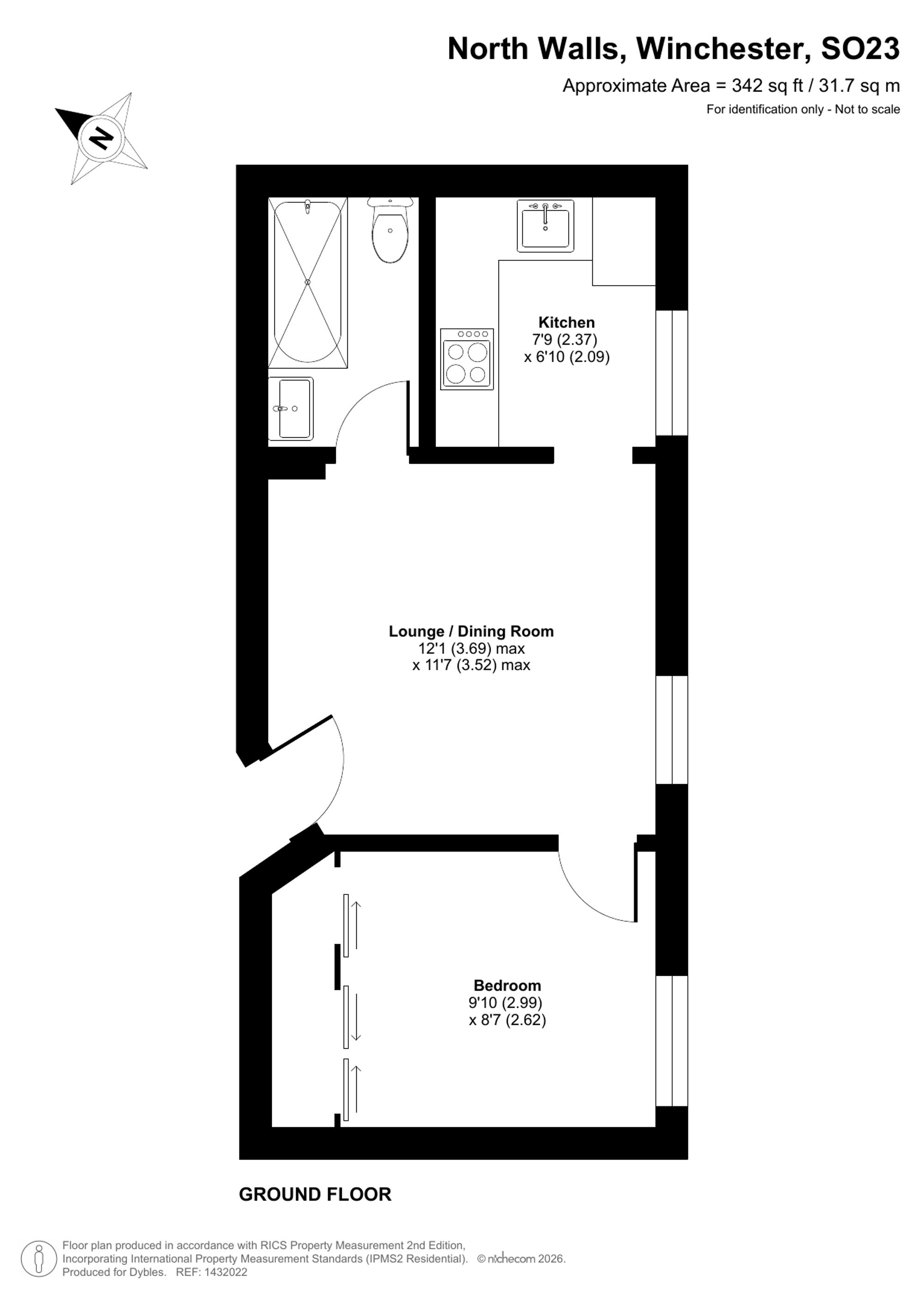 A perfectly positioned one bedroom first floor apartment which is located in the centre of Winchester on North Walls and offers easy access to the city’s many attractions, amenities and is within walking distance to the mainline train station and High Street. This splendid period conversion is well-presented throughout with light and airy accommodation comprising a comfortable sitting room to the front of the property, a separate contemporary kitchen with a range of wall and base units and complementing work surfaces, a good size double bedroom with mirrored built-in wardrobes and a stylish and attractively fitted bathroom with shower over the bath. The property also has the advantage of gas fired central heating. To the outside the apartment benefits from an off-road parking space to the rear of the building, which is unique for an apartment located so centrally.