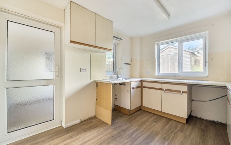 Internally, the ground floor comprises a welcoming sitting room, kitchen, cloakroom and a separate dining room which gives direct access to the garden via sliding patio doors. Upstairs, there are two generously sized bedrooms and a family bathroom. With scope to update and reconfigure, this home presents plenty of potential to create a stylish and comfortable residence.