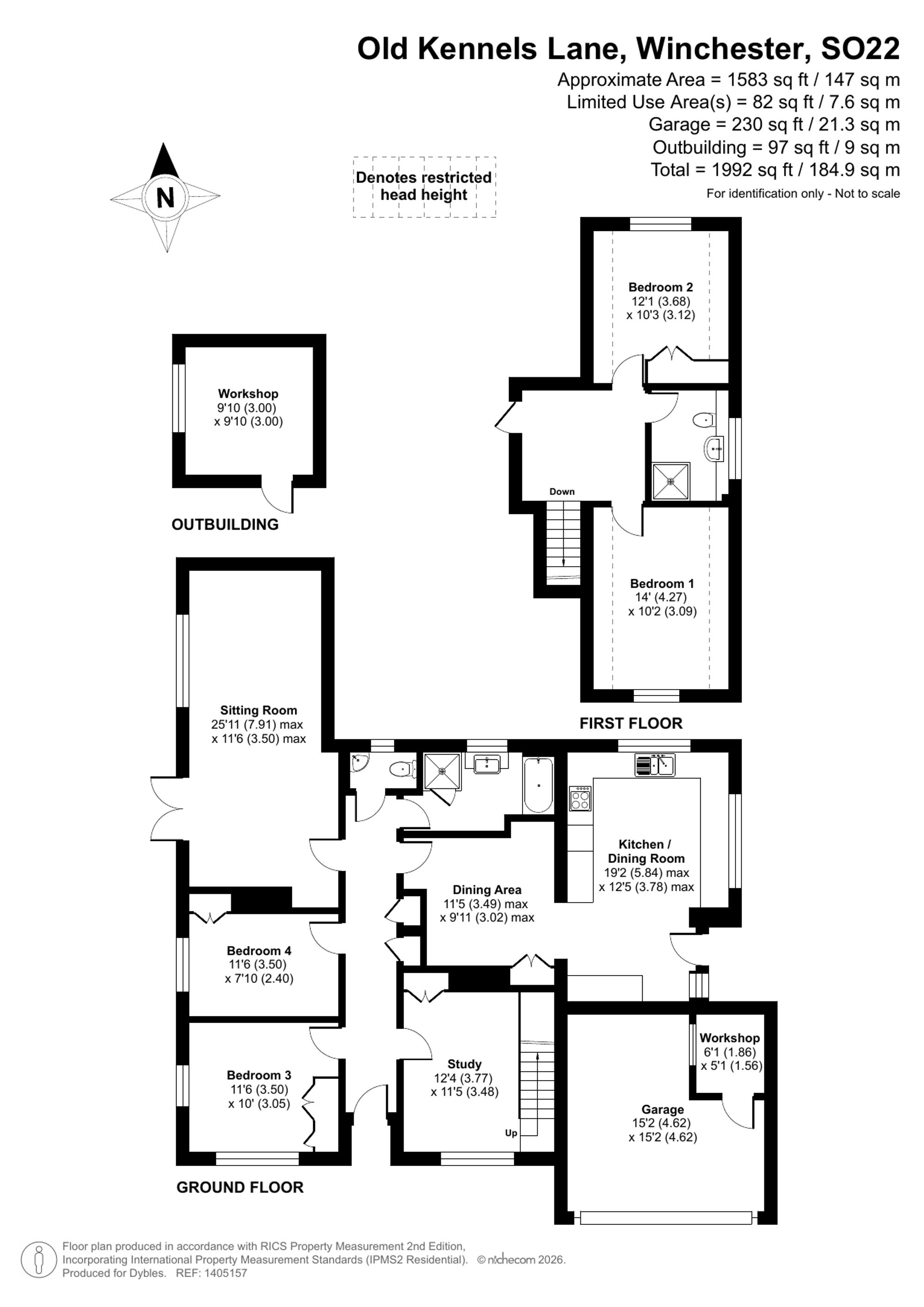 The ground floor provides the heart of the home, with a welcoming entrance hall leading through to a spacious kitchen/dining room, perfectly suited to modern family living and entertaining. A separate dining area and an additional sitting room offer flexible reception space, while a dedicated study makes an ideal home office. Two well-proportioned bedrooms are located on this level, served by contemporary bathroom facilities, making the layout ideal for multi-generational living or those seeking ground-floor accommodation, with the added benefit of accessible attic space providing useful storage potential.
