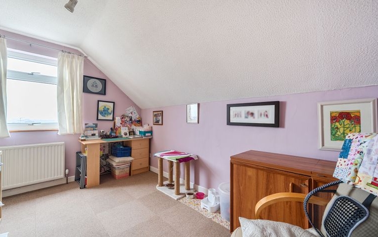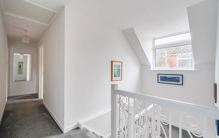 To the first floor, there are five bedrooms and two bathrooms, making the home perfectly suited to growing families or those requiring flexible office space. One bedroom is served by an ensuite family bathroom, with several rooms enjoying picturesque views overlooking St. Catherine’s Hill.