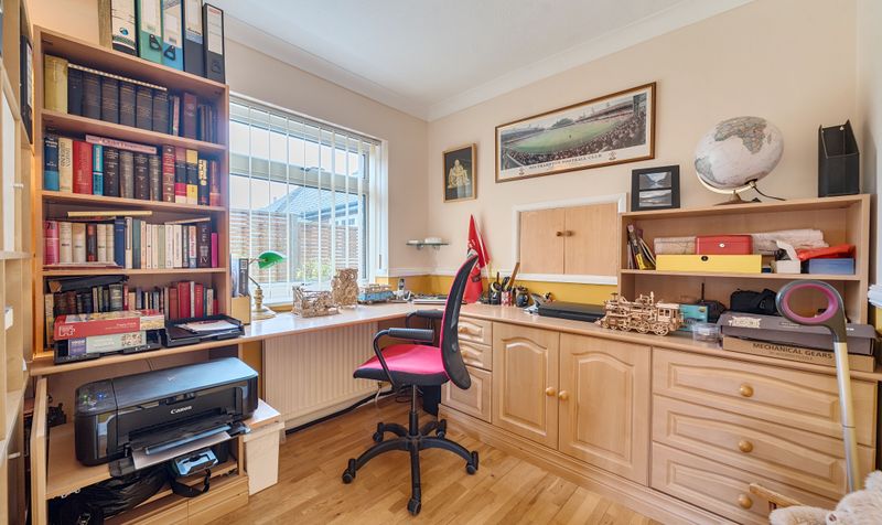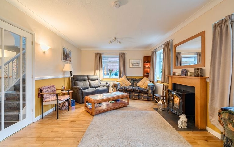 Internally, the accommodation is arranged over two floors and offers generous and versatile living space throughout. The ground floor comprises a welcoming sitting room, a separate dining room, a well proportioned kitchen, study area, ground floor WC and a bright conservatory that provides an ideal space to enjoy views of the garden. The property also benefits from an integral garage, offering additional storage or parking.