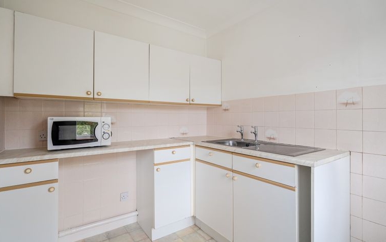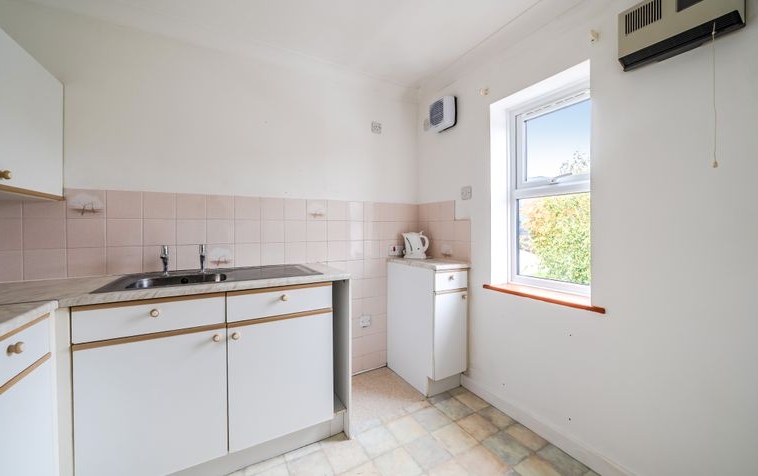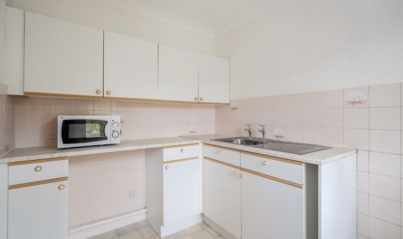 A separate kitchen sits just off the reception room, providing a functional layout with scope for modern updates to suit contemporary tastes. The double bedroom is generously sized and includes built-in storage, while the bathroom is conveniently located off the hallway, fitted with a bath.