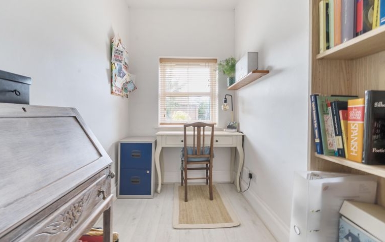 Upstairs, the property offers two generously sized bedrooms along with a versatile third room, which could serve as an additional bedroom, home office, nursery, or dressing room. A modern family bathroom completes the first-floor accommodation.