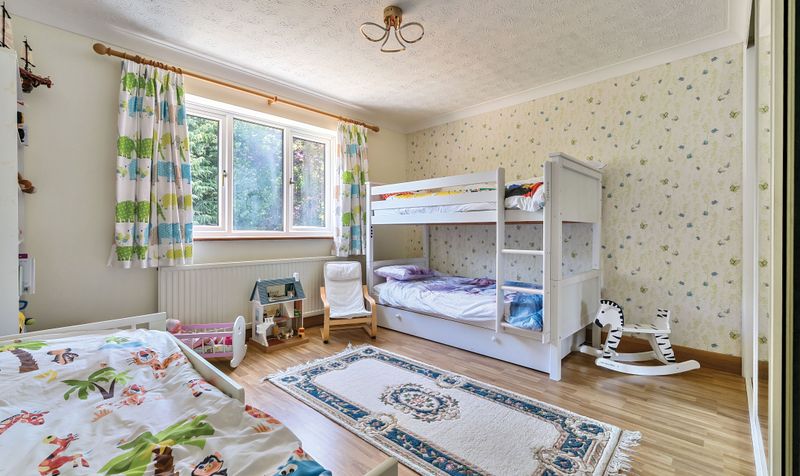 Upstairs, the property continues to impress with four spacious double bedrooms, all benefiting from built-in storage. The principal bedroom enjoys its own en suite shower room, while the remaining bedrooms are served by a well appointed family bathroom.