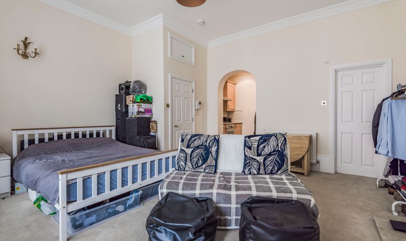 Spacious studio flat, located in the heart of Winchester City Centre. Character property on the ground floor of this period conversion with high ceilings, feature fireplace and large windows which have shutter blinds. Accommodation briefly comprises; entrance hall, large studio room, separate kitchen and separate bathroom.