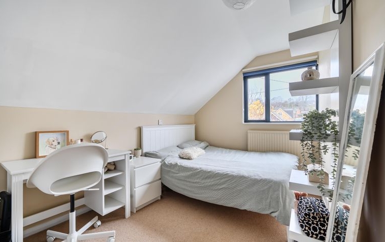 Upstairs, the property boasts three well-proportioned bedrooms, which are served by a modern family bathroom. The layout makes excellent use of space, offering comfort and privacy for all members of the household.