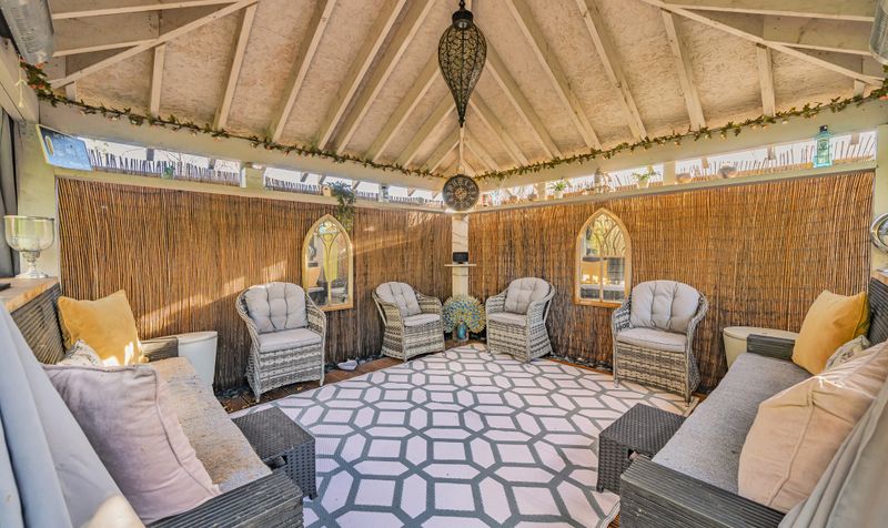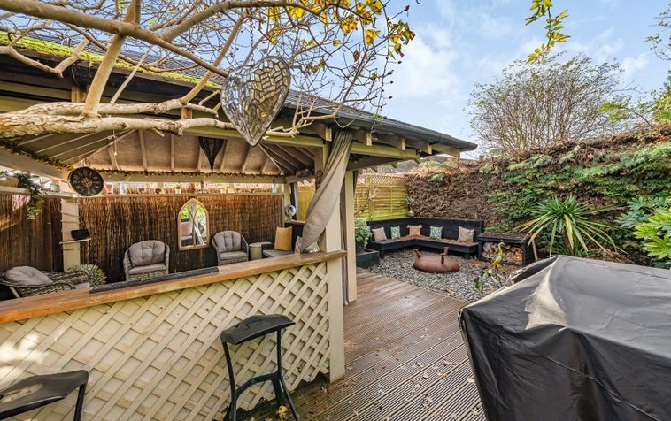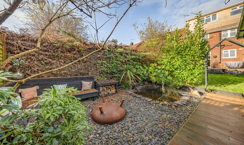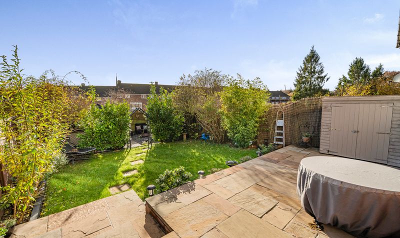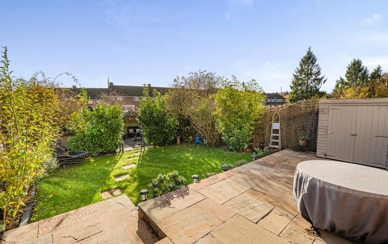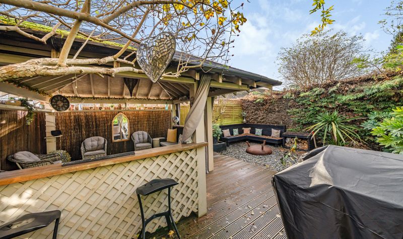 The ample rear garden has a good-sized patio with steps down to a lawn then at the very back of the garden is decked area with a custom built wooden gazebo perfect for alfresco dining or entertaining friends and family. The garden can also be accessed via the side passage.