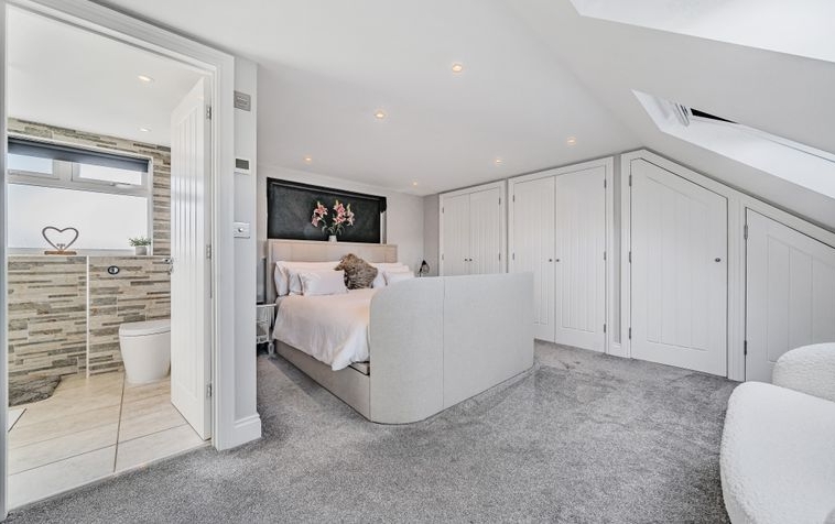 On the second floor is another large double bedroom with built in storage and a contemporary en-suite shower room.