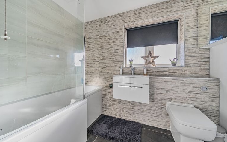 Upstairs on the first floor there are two double bedrooms one with built-in wardrobes. A smart family bathroom with bath and shower completes the first floor accommodation.