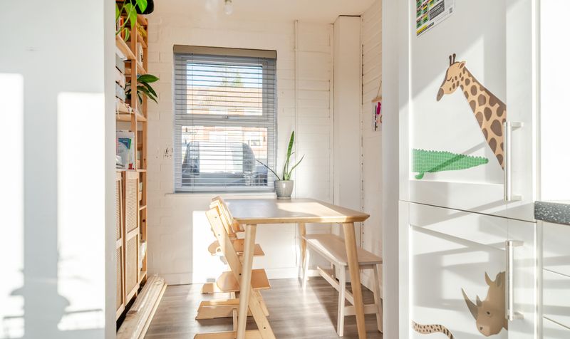 The home boasts a beautifully maintained and decorated interior filled with an abundance of natural light, offering well-proportioned accommodation arranged over two floors. The ground floor comprises a welcoming reception room, a fitted kitchen, and a separate dining area, while the first floor provides two generous bedrooms and a family bathroom.
