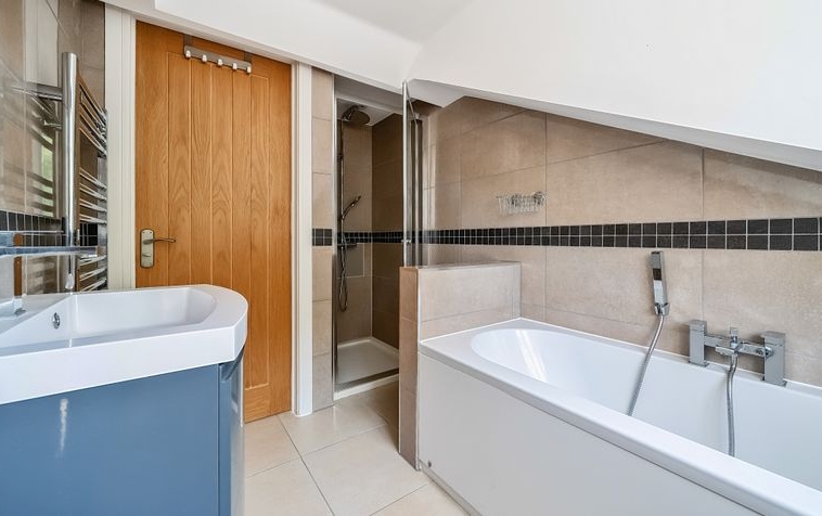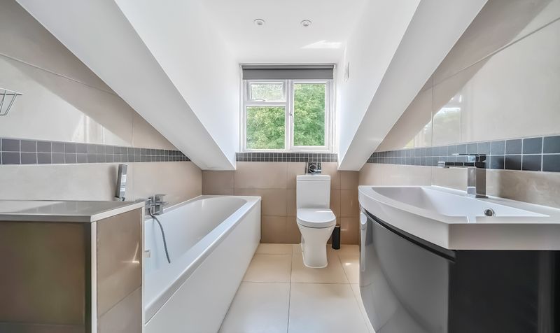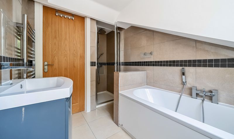 Upstairs, the property continues to impress with two generously sized double bedrooms. The principal bedroom benefits from built-in storage, enhancing convenience and maximising space. Both bedrooms are presented in excellent decorative order, complementing the quality and style found throughout the home. Completing the internal accommodation is a modern three-piece bathroom suite, finished to a high specification and perfectly in keeping with the overall standard of the property.