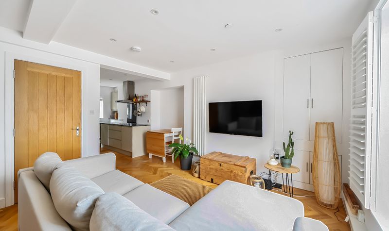 Upon entering the apartment, you are welcomed by a practical entrance lobby with fitted storage, providing the perfect space for coats and shoes. This leads through to the true hub of the home: an impressive open-plan kitchen/lounge/diner. Finished to a high standard throughout, this versatile living space features stunning parquet flooring and a stylish breakfast bar, ideal for both everyday living and entertaining. The contemporary kitchen is fitted with integrated appliances and modern cabinetry, offering both functionality and sleek design.