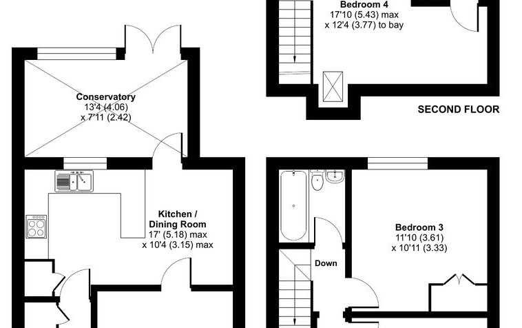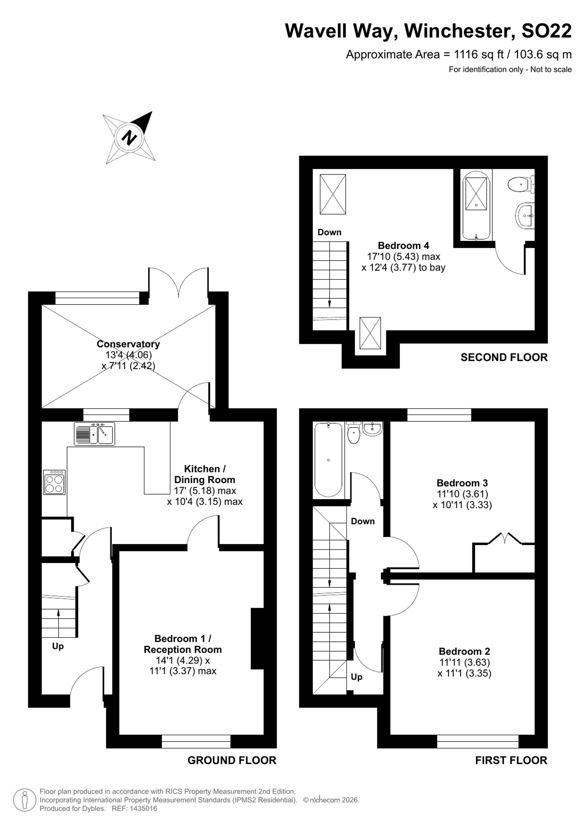 The first floor comprises two double bedrooms and a family bathroom, complemented by a large bedroom with an ensuite on the second floor.