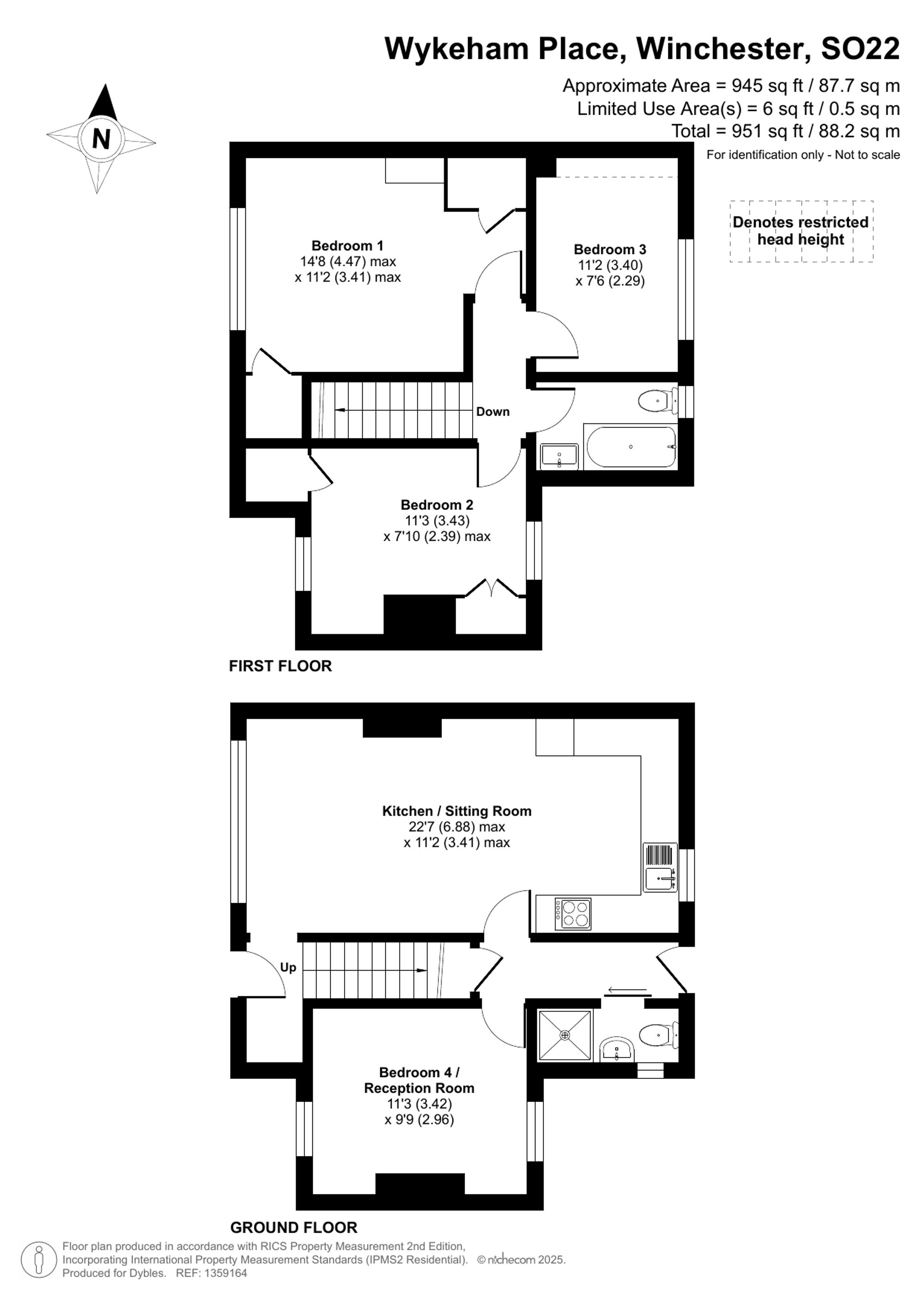 The first floor offers three well-proportioned bedrooms. The principal bedroom is a spacious double, complemented by two further bedrooms, all arranged around a central landing. A family bathroom serves this floor, finished to a modern standard.